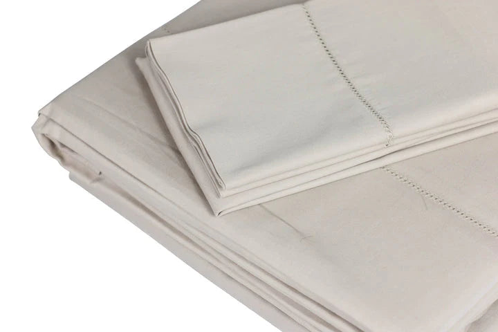 Beautiful 100% Egyptian Cotton sheets featuring hemstitching on the edge of the flat sheet and on the pillowcases.
